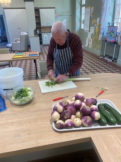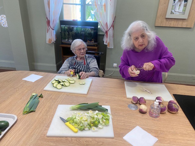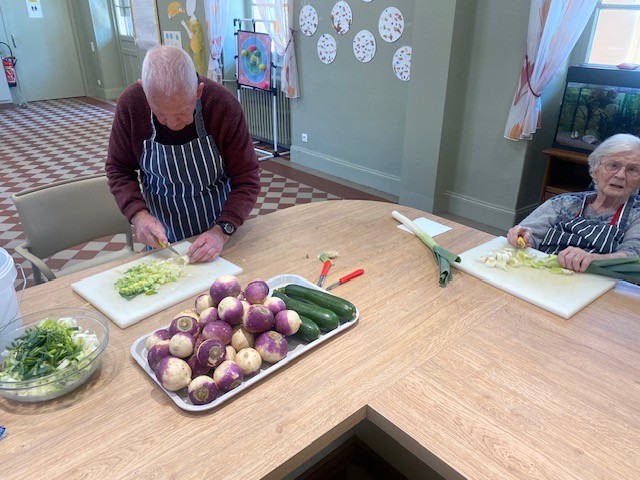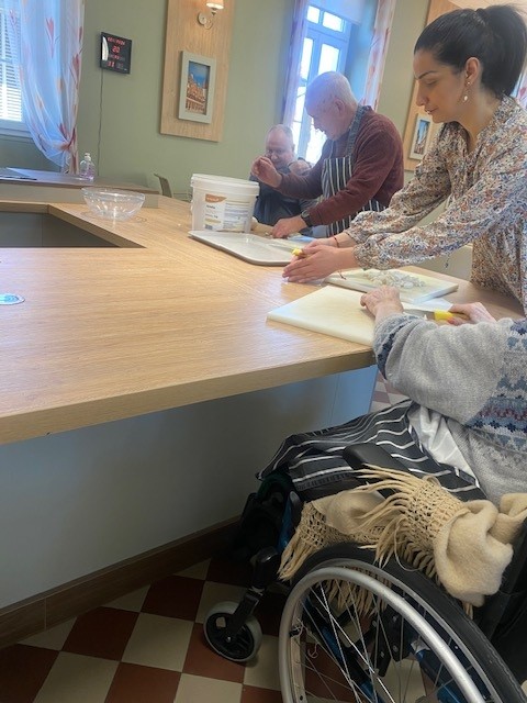 Ces ateliers permettent de stimuler les gestes du quotidien et de raviver des souvenirs liés à la cuisine. Certains résidents ont également participé au rangement et à la vaisselle, avec plaisir.