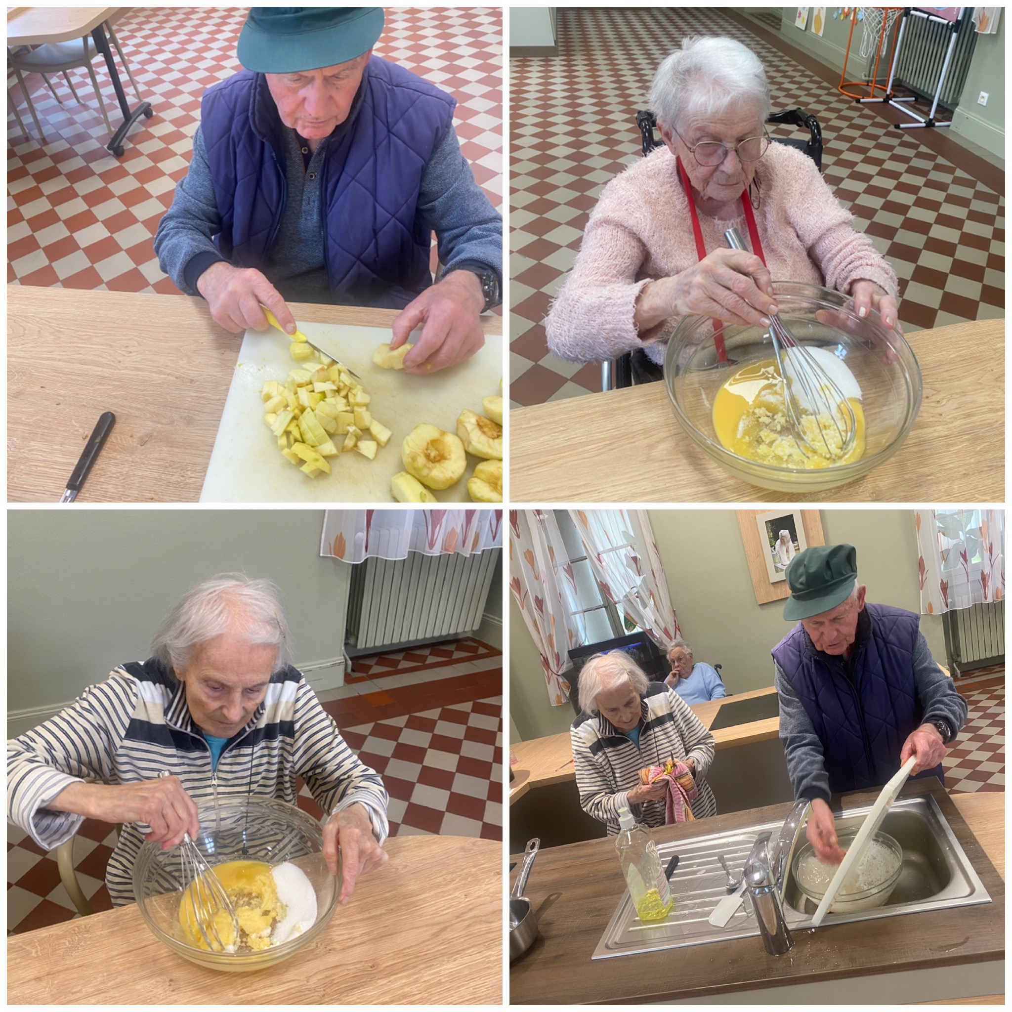 Les résidents ont réalisé ensemble un gâteau aux pommes, en participant à toutes les étapes de la préparation, dans une atmosphère agréable et dynamique.